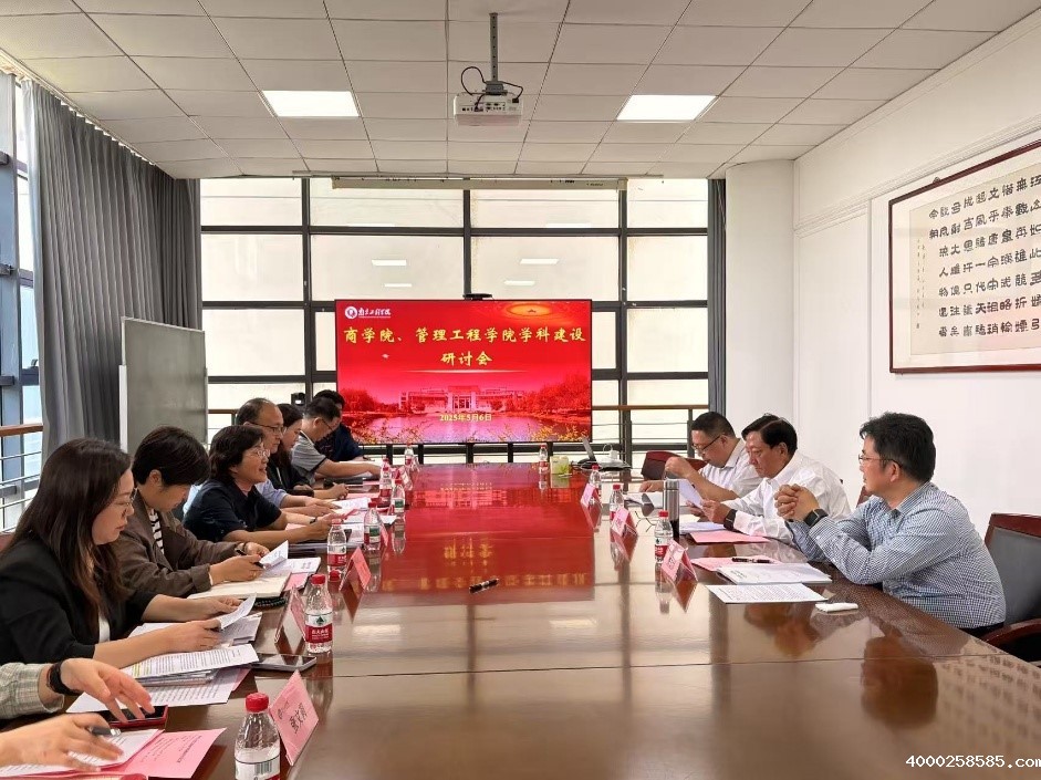 5月6日下午,商学院、管理工程学院在经管楼A303会议室联合举办学科建设研讨会。南京大学商学院院长赵曙明、南京航空航天大学经济与管理学院原院长、我校客座教授周德群、南京邮电大学管理学院院长黄卫东应邀前来指导。我校党委常委、副校长汪群,党委常委、人事处处长张焱,以及商学院、管理工程学院党政负责人及骨干教师参加了本次研讨会。